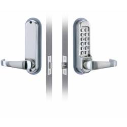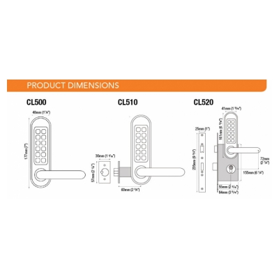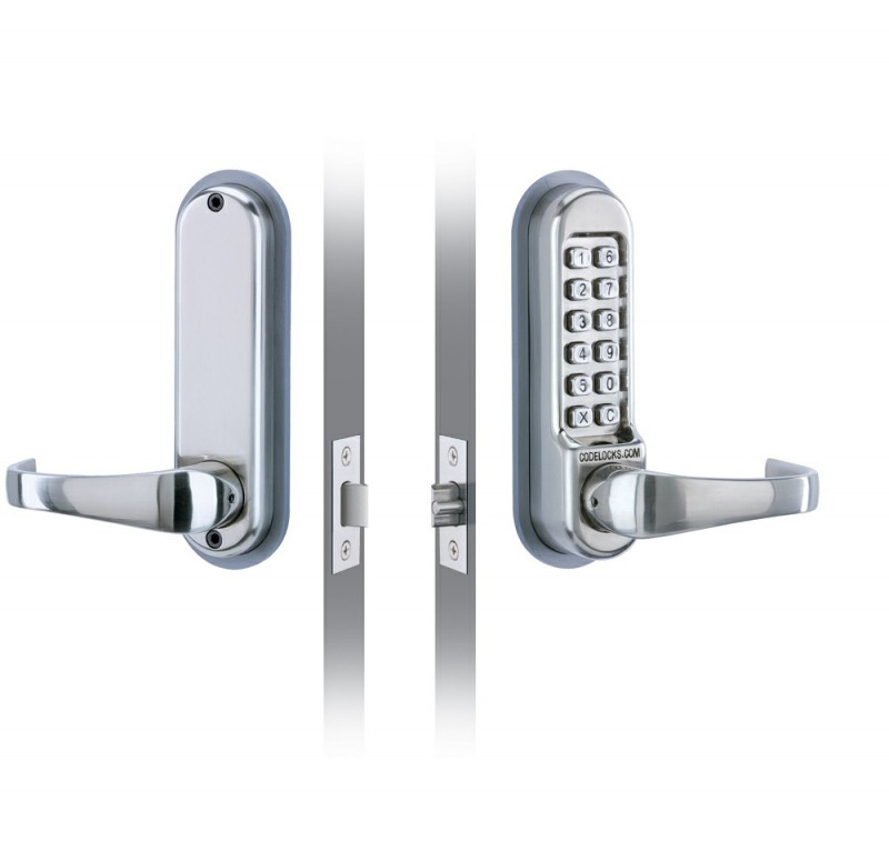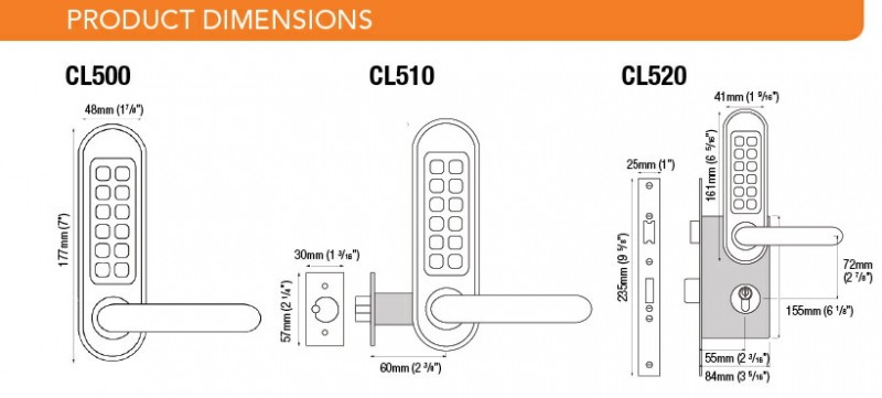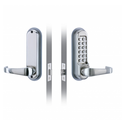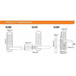 The CL510 locks are supplied with a random code commencing with the ‘C’ clear button. To change the code after fitting, the lock must first be removed from the door. The code is non sequential, that is the code can be entered in any order e.g. 1234 can be 4321 or 1342 or whatever is the most convenient sequence. With the 11 buttons a total of 2,047 different codes are available, any of which may be entered in any order.