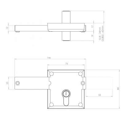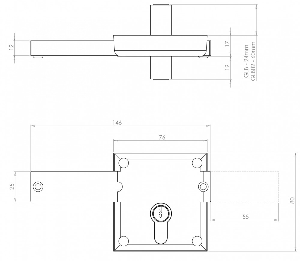 The lock eurocylinder which extends from the back of the lock is available in 2 lengths for different sized gates.  The standard GLB can be used on gates up to 24mm thick and the GLB02 can be used on gates up to 60mm thick.
