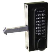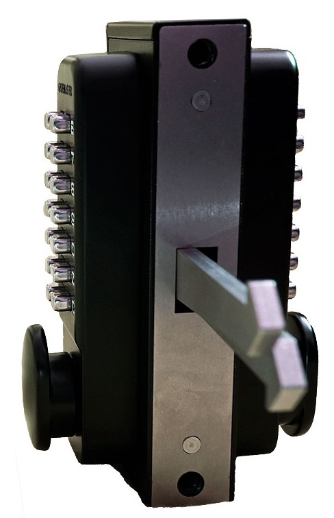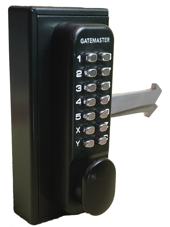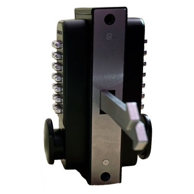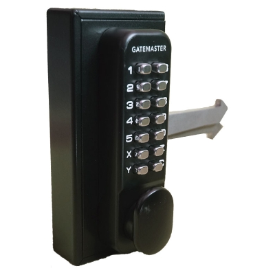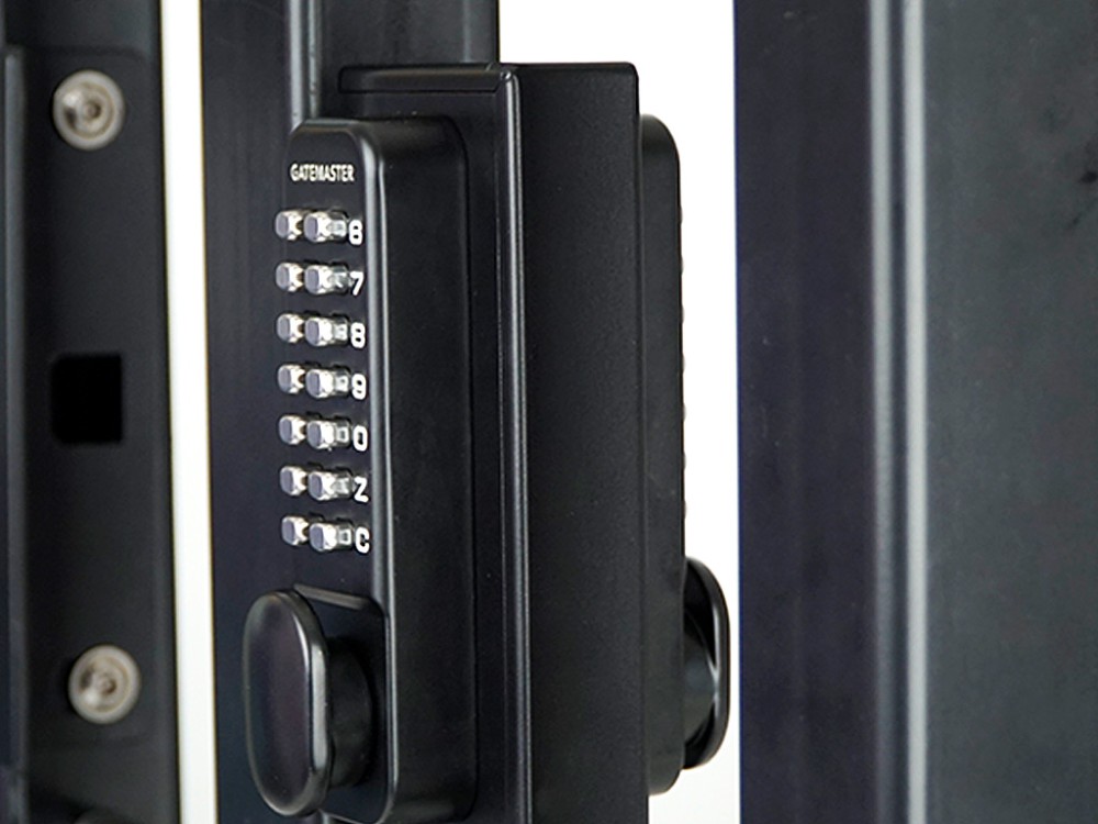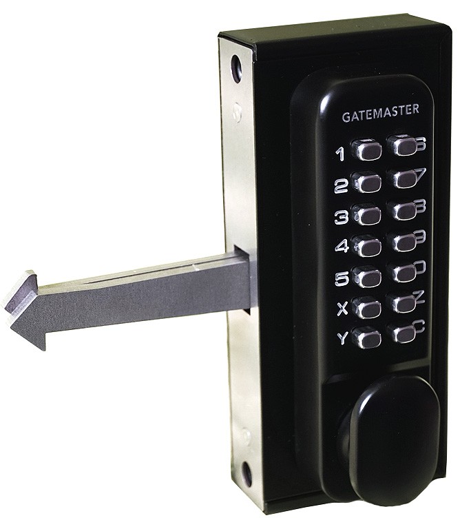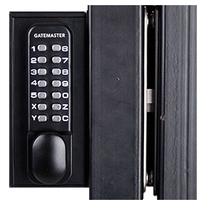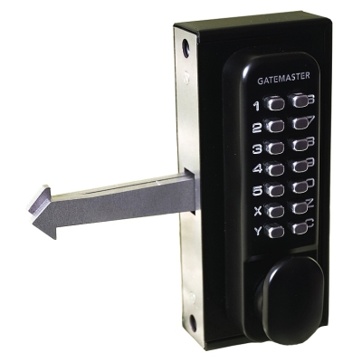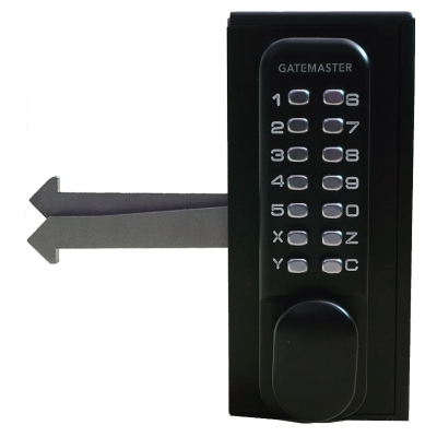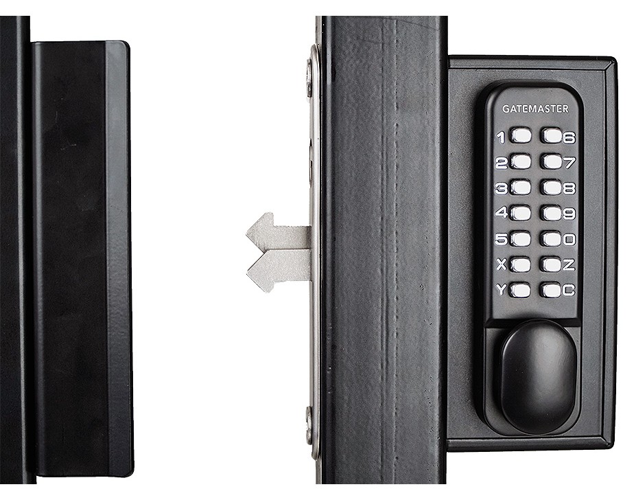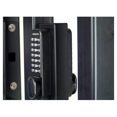 Strong gate lock designed especially for sliding gates, this is the double sided version with combination keypads on both sides of the lock. The sliding gate lock auto-latches into the keep when the gate is slid closed and is secure until the code is entered. Manufactured from stainless steel and powder-coated provides the complete locking mechanism with maximum protection against external elements. This lock is easily installed by drilling just three holes through the gate frame and bolting on the lock, please not 100mm gap behind the stile is required to fit the lock. (see spec sheet for full installation instructions).