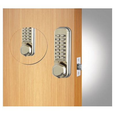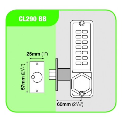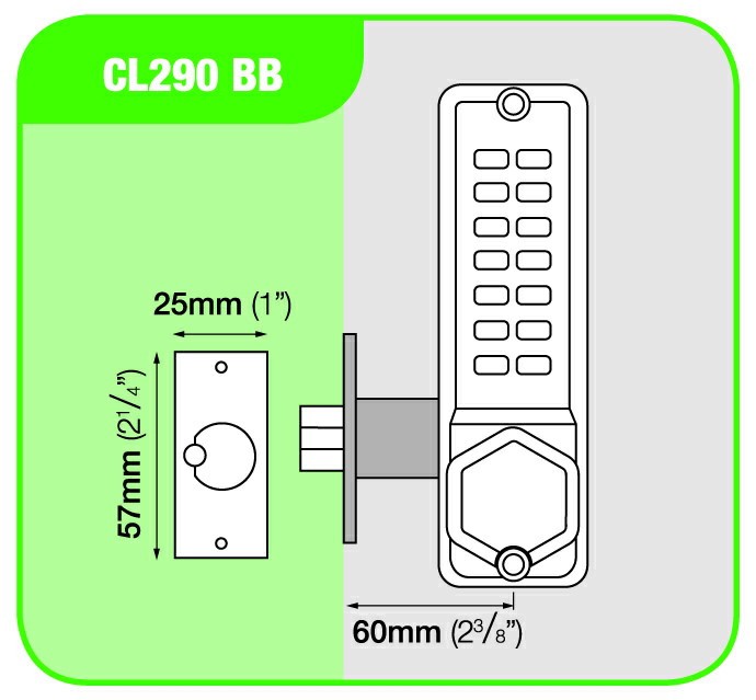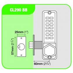 The CL290 locks are supplied with a random code commencing with the ‘C’ clear button. To change the code after fitting, the lock must first be removed from the door. The code is non sequential, that is the code can be entered in any order e.g. 1234 can be 4321 or 1342 or whatever is the most convenient sequence. With the 13 buttons a total of 8,191 different codes are available, any of which may be entered in any order.