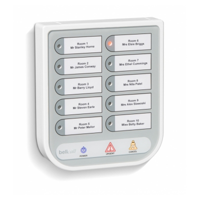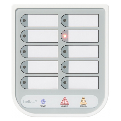 A standard call can be generated by a Call Point, a pendant switch or a ceiling pull switch. On the Indicator Panel an LED for the corresponding zone will illuminate and the sounder will operate continuously. Staff can temporarily silence the alarm by touching the symbol (Cancel). The alarm will remain muted until another alarm is activated. The alarm call can be permanently cancelled by visiting the room where the call originated and resetting the Call Point using a magnetic key (or just pressing the reset button, if so configured).