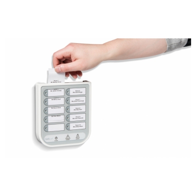 Each Indicator panel is supplied with strips of Name labels which can be accessed by removing a magnetic cover strip at the top of the panel. These strips can either be hand written or individual printed adhesive labels can be applied. Additionally, the strips are available on perforated A4 sheets which can be printed on a desktop printer.