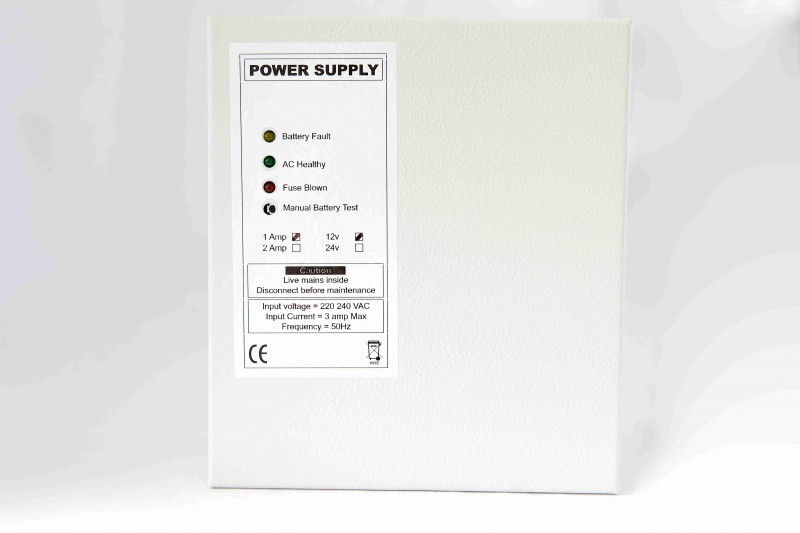 13.8vdc 3A power supply in a small housing 225h x 250w x 80d (mm) with multi indicator. Front tamper and designed to house up to 9 Ah battery.