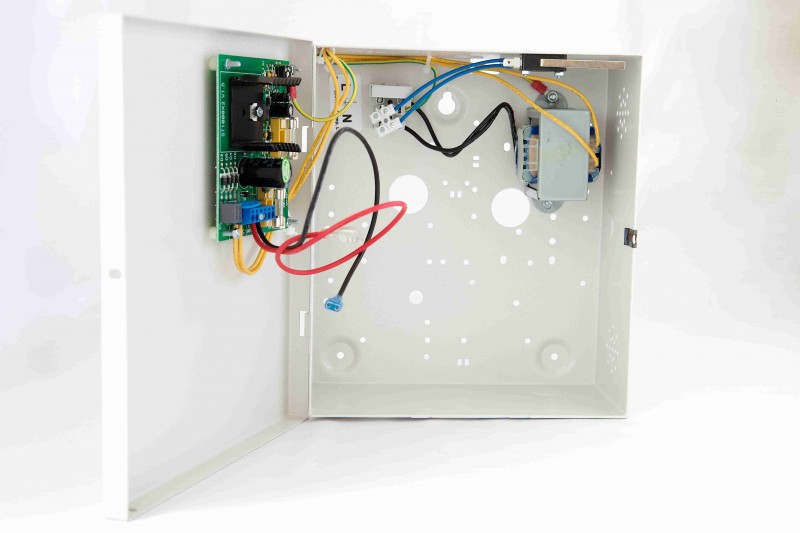 13.8vdc 3A power supply in a small housing 330h x 330w x 80d (mm) with multi indicator. Front tamper and designed to house up to 18 Ah battery.
