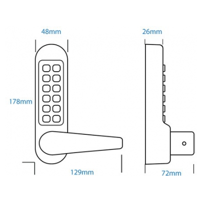 New from Asec, this Digital Lock from the AS4300 Series is supplied complete with an adaptor kit and spindles for fitting to a panic device and it is ideal for use in conjunction with Asec Panic Hardware. It is suitable for medium to heavy duty use on internal or external timber doors and features 12 large indented buttons. It is suitable for either right or left handed applications, with a clutched handle to help prevent forced entry and damage.