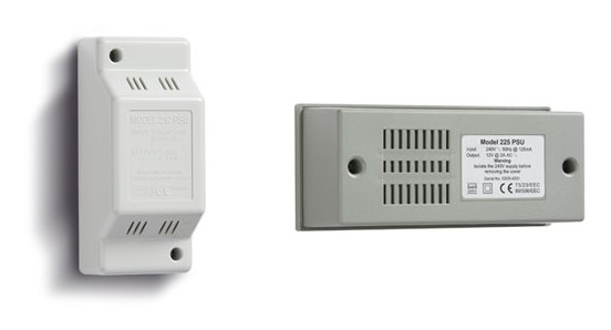A wall mounting, double insulated, fused transformer for use with door entry telephone systems. This supply incorporates a relay for the direct operation of the lock release to overcome possible voltage drop on larger systems. It has a nominal output of 12V AC @ 2 Amps. Compliant with EN60950.