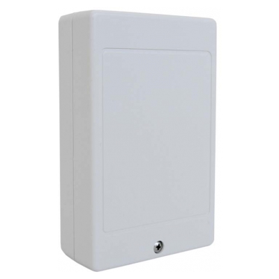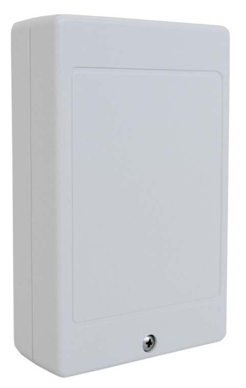 4 way video distributor for systems with balanced video signal ("4+1"). In white plastic ABS box 11 x70 x 30 mm surface mount.