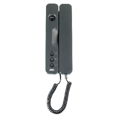 • Rubber, round cross-section spiral cord with telephone plug on base on door phone.