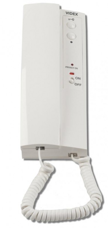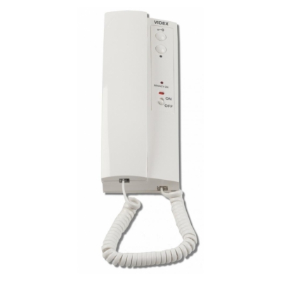 2 button handset with privacy of speech and on/off switch with LED. For use with Sentry and Sentry 1 systems. Handset has a full length base. Desk kit for this model is 3038A. Includes lock button, dry contact service button and slide mute switch.