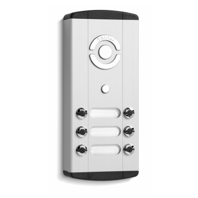 All panels are manufactured from anodised aluminium in a contemporary design and have black plastic trims with contrasting chromed pushbuttons and speech grill. the front panels are hinged from the back box for ease of installation and the hinges can easily be changed from one side to the other to assist in tight locations.