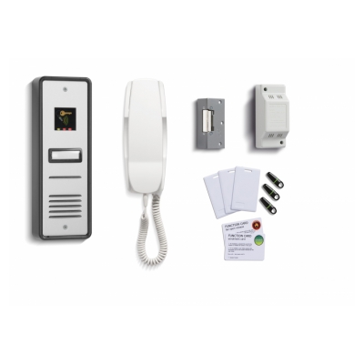 It is common for a door entry telephone system to be combined with a proximity access system for the benefit of resident staff or tenants. The CSP series are combined door entry and coded access systems utilising the economic Paxton standalone compact reader. These systems are conveniently packaged with all necessary components to complete an installation including a starter pack of keyfobs. Additional packs of keyfobs can be purchased to the required number - 10,000 keyfob capacity.