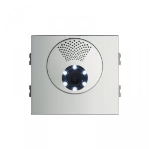 This aluminium finish colour video VDS module is for use in the Skyline modular panel. The module amplifier comes with voice synthesizer as standard, when the door release is activated a message is heard: "Door open, please close after entering". The camera lens has built-in pan&tilt adjustment system to set the perfect viewing angle.