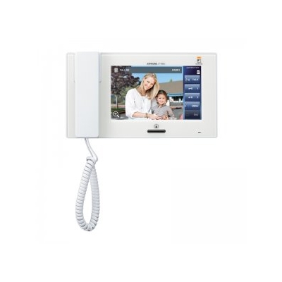 The monitor features a seven inch colour screen and has clearly labelled buttons with icons for easy usage. It comes with a door lock release, reset system and home button. programming the monitor is straightforward as it can be done through self-learning or following the on screen instructions. It is manufactured from flame resistant ABS resin and is designed for wall mount installation.