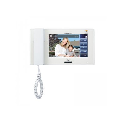 The monitor features a seven inch colour screen and has clearly labelled buttons with icons for easy usage. It comes with a door lock release, reset system and home button. programming the monitor is straightforward as it can be done through self-learning or following the on screen instructions. It is manufactured from flame resistant ABS resin and is designed for wall mount installation.