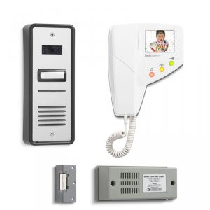 • One videophone per call button and up to three extension videophones (more with additional power supplies)