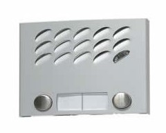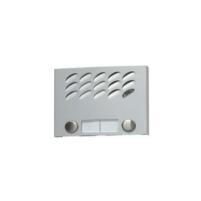 Element of the modular Mody push button series. With 2 call buttons and suitable for MD30 electric door speaker; depending on the different cases, it is wall-mounted through back box, module frame, rain shelter and it can be joint to the various button modules of the same series. 2 rows.