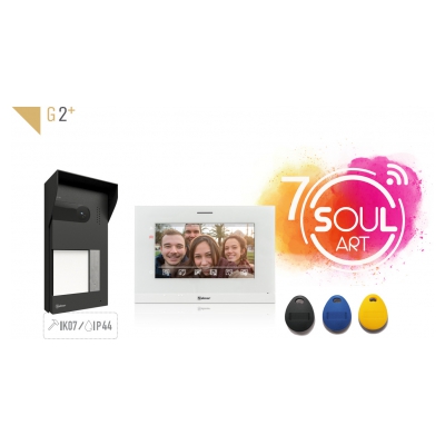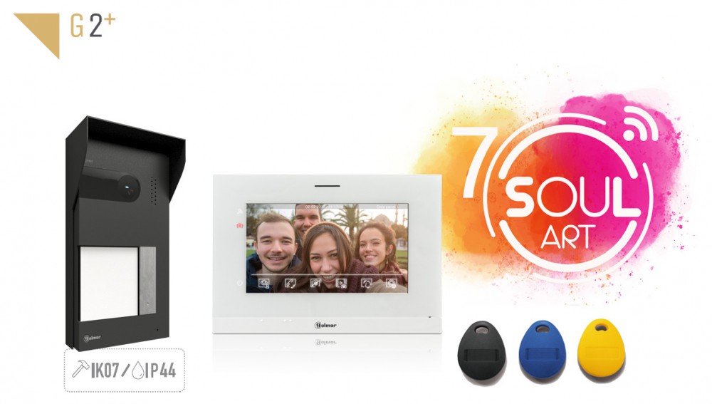 This Golmas S5110 ART7W one station Soul” video kit uses the new Golmar G2+ technology. It has Wi-Fi capability enabling you to receive calls on your mobile devices if not at home. This is achieved by downloading the FREE G2Call APP. The kit comes complete with: