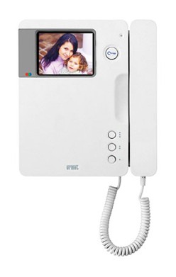 SIGNO video door phone designed by Architect CITTERIO, with 1 green colour backlit door opening button, 2 supplementary function buttons, adjustable call volume and mute. It is provided with a special handset with earpiece allowing hearing-impaired users to hear who is talking from the panel. The video door phone is supplied without bracket (1740/90)
