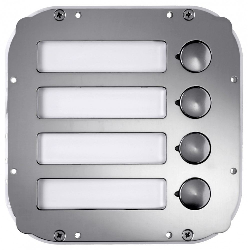 Additional module with 4 buttons for antivandal Matrix Style door station. In stainless steel it allows composition in audio and video door entry system either conventional or digital. IP45 and IK09 protection degrees are guaranteed. Name plates and a spot close to the buttons are back lit by green LED's