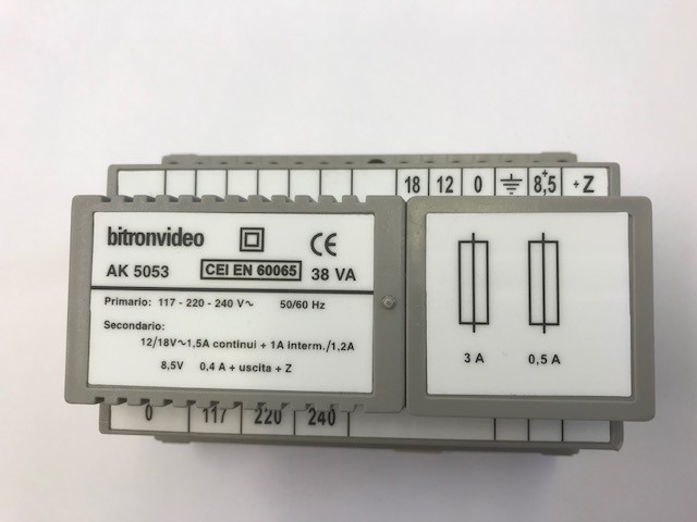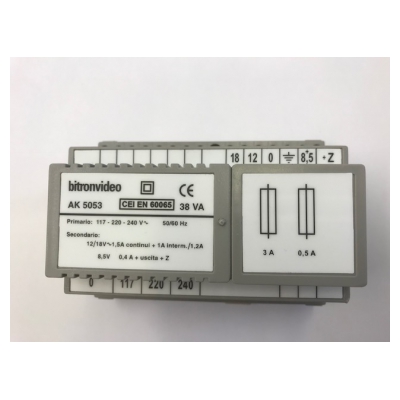 • Power unit 110/220/240Vac, outputs 12Vac, 12Vac, +8Vdc, +Z. Suitable for doorphone systems in combination with relay AK5343.