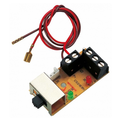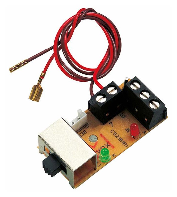 The four position switching module is used for setting call volume (one to three levels) and disabling the acoustic call signal. Disabling the call signal is indicated by a red LED and a green LED indicates the door is open. It is used in conjunction with the Elvox Petrarca series of handsets. The switch takes the space of a single blank module which is removed during installation.