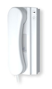 The Entryphone 202 model is a white elegant door phone handset that has 2 buttons and an integrated volume control. The Entryphone 202 model is also built for 4+n cabling. Please refer to the attributes below for a further specification.