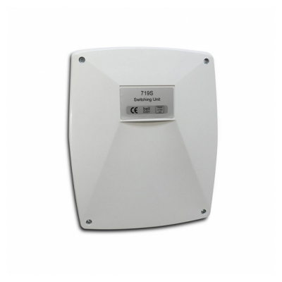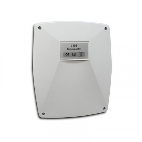 This switching unit provides a means of operating a door entry telephone system from two entrances. Several 719s unit may be combined to extend operation up to a maximum of eight entrances.