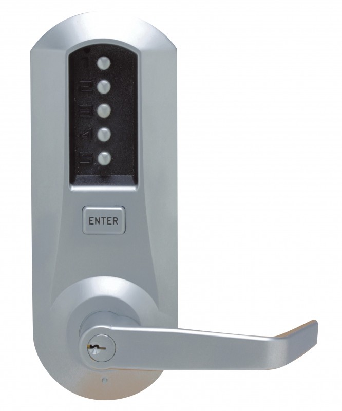 5021 Heavy Duty Mortice Latch Lock.  Entry upon input of correct code & the enter button. Free exit via lever handle.