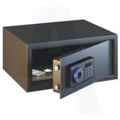 • The Hotel safe is secured by a user-friendly electronic lock and motorised boltwork. Features include master coding, emergency key override and a 100-event audit facility.