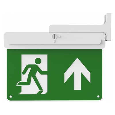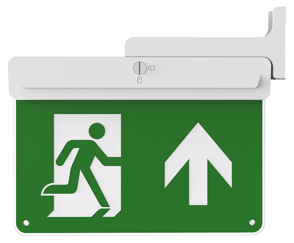 5 in 1 emergency exit sign Maintained & Non-maintained optionality as standard Includes arrow up legend Other legends available separately Wall and surface mount as standard Kits available for: recessed/flag & suspension mounting options LED indicator and test button Manual test and Self-test options available Available in white and black