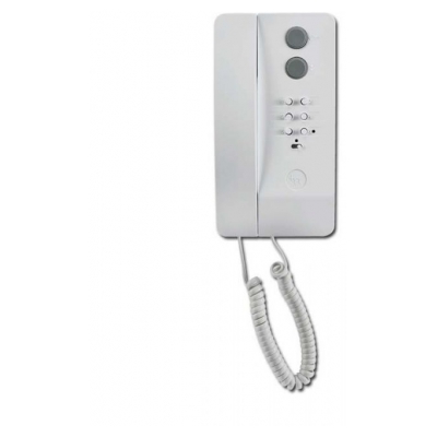 Audio receiver handset with intercom buttons and privacy switch. White