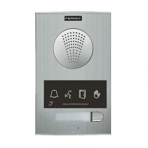 The 7356 1 way VDS OneToOne City Panel includes an information screen that informs users on door entry operations through illuminated pictograms, for example; calling, in call, door open or channel busy. These facilities are perfect for users with hearing troubles.