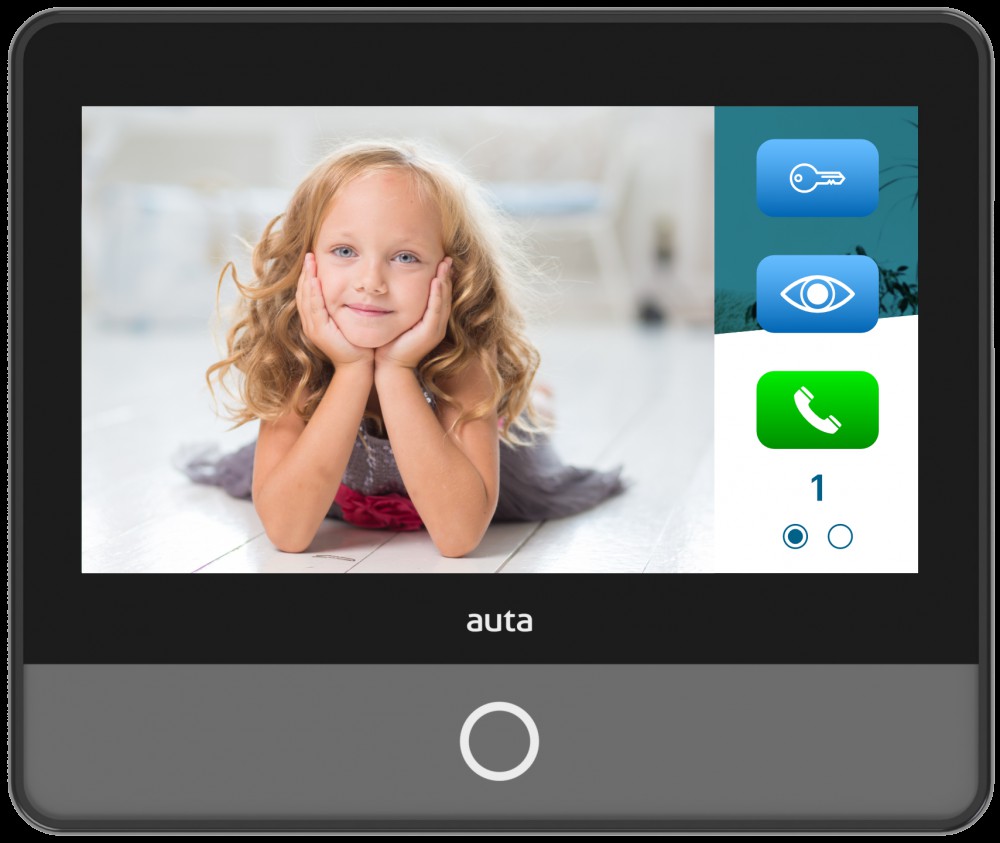 Coax digital monitor with wifi technology. It can be installed using 4 wires + COAX in any Auta digital system It incorporates a 7" Colour LCD panoramic screen, touch technology, hands free audio, capture images during the call, multi function auxiliary outputs, melody section, special functions. it allows remote management through one or several mobile devices and Auta Onex WiFi App both inside and outside by 3G, 4G and 5G.