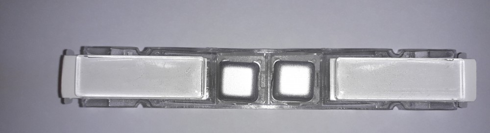 Standard double push button (2 silver buttons with 1 window to either side of the buttons)