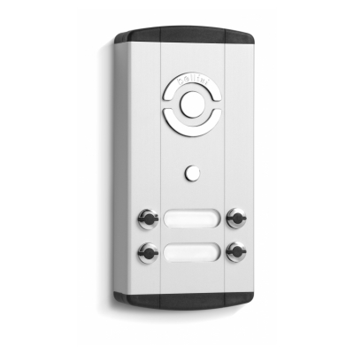 All panels are manufactured from anodised aluminium in a contemporary design and have black plastic trims with contrasting chromed pushbuttons and speech grill. the front panels are hinged from the back box for ease of installation and the hinges can easily be changed from one side to the other to assist in tight locations.
