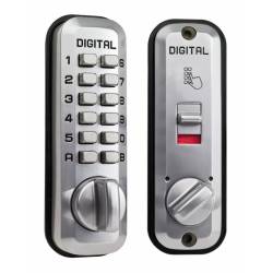 Currently available in 3 finishes, with a choice of auto locking (latch bolt) or surface rim mounted dead bolt (manual re-lock).