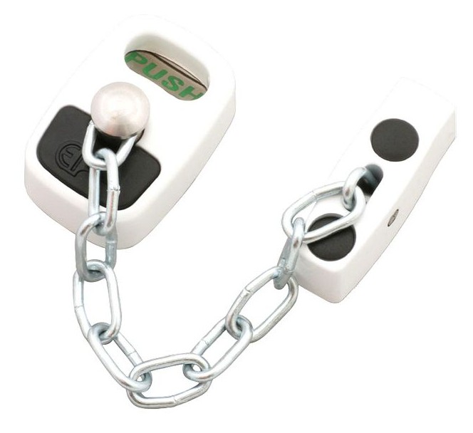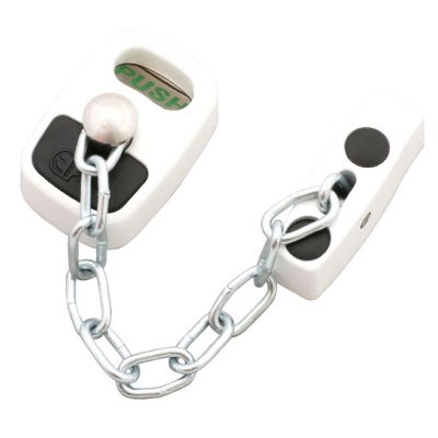This Asec Door Chain with Cylinder is an innovative take on the traditional door chain design, featuring external key release and internal chain access. The chain body uses a simple push in engagement with a standard external rim cylinder which enables the chain to be disengaged externally with a key in emergency scenarios (ideal for people such as carers to gain access while the chain is on the door) and it can also be easily released using a push button. This particular model is supplied complete with a compatible external cylinder.