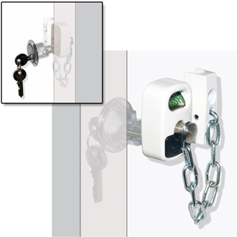 In an emergency situation the unique Security Door Chain with external release provides the perfect solution when the need arises to gain immediate access to a property. Disengaging the chain is achieved by means of a key release via an externally fitted standard rim cylinder.