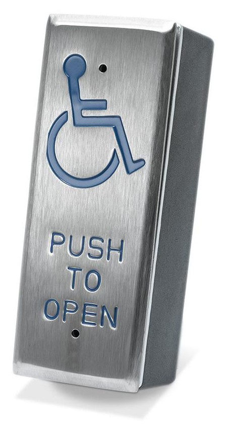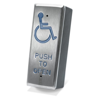 Olix Narrow style surface mount , stainess steel DDA exit button - Wheelchair Logo with PUSH TO OPEN