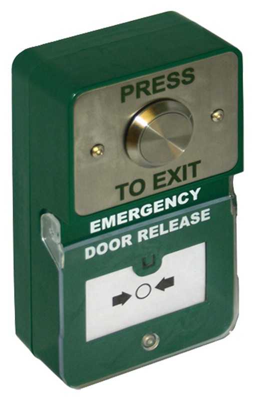 • Dual unit of Single resettable call point with Emergency Door Release either via a Green Dome Button or Stainless Steel Push Button