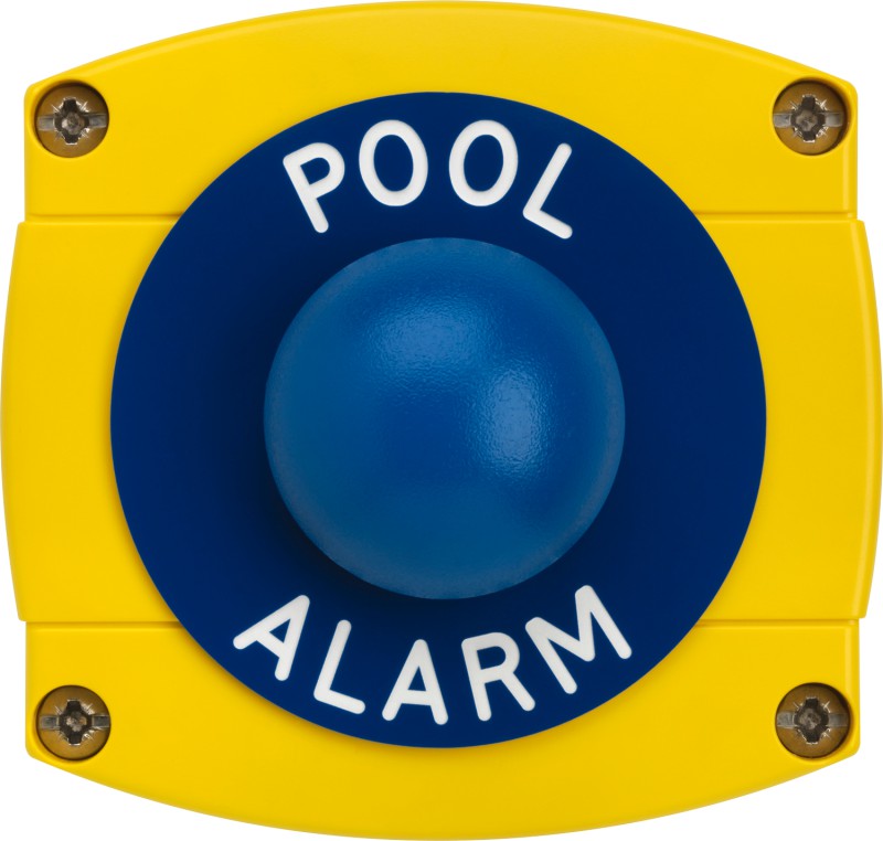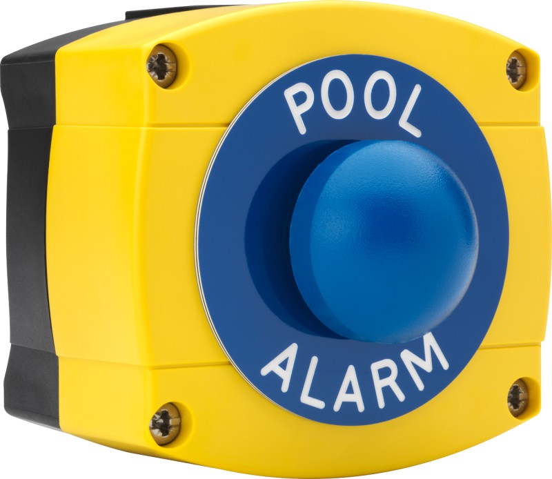 Yellow/Black Backbox with Momentary blue dome "POOL ALARM"