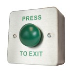Surface mount green dome exit button with 'PRESS TO EXIT' text