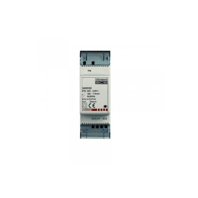 This power supply is double insulated for additional protection in accordance to the certified electrical inspector (CEI). The device is used to supply power to video door entry systems and mini sound systems. It is enclosed by a two DIN module plastic rail enclosure annd the device must not be configured.