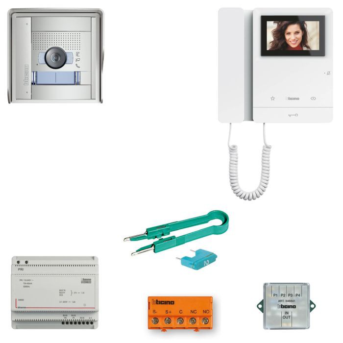 This door entry kit includes everything you will need with the Bticino C100 Video Handset for users to view as well as communicate to potential visitors ensuring you know exactly who is at your door, impact and weather resistant entry panel with call button and illuminated buttons and tag labels, a power supply, configurator kit and a door lock relay enabling users to remotely grant visitors access through the door lock relay's remotely operated door opening mechanism.