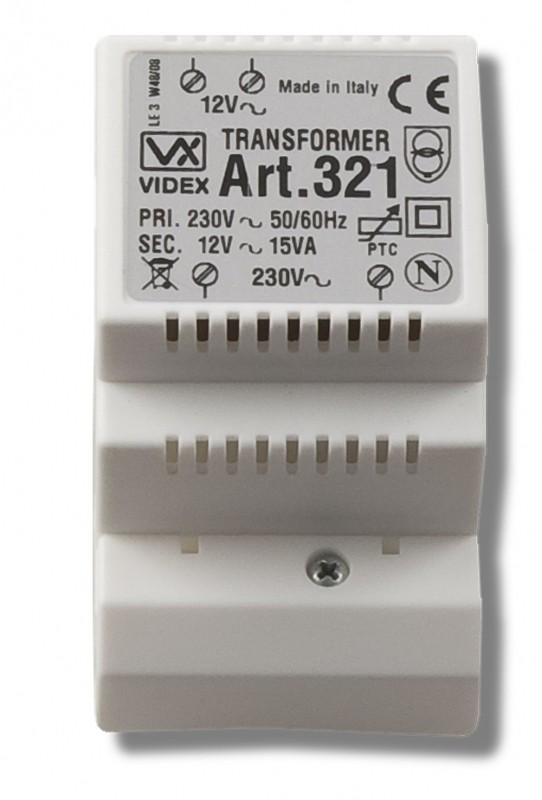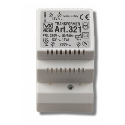 230/13 Vac 15VA transformer, with internal PTC overload protection.