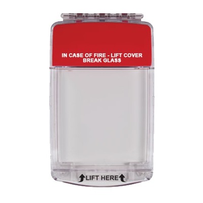 frame that retrofits over the break glass call point. When lifted to gain access to the