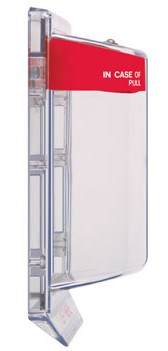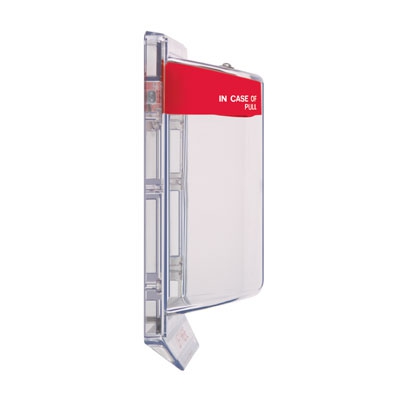 that retrofits over the break glass call point. When lifted to gain access to the break