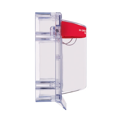 that retrofits over the break glass call point. When lifted to gain access to the break