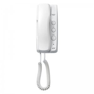 This audio handset is wall mounted as standard and comes with a door lock release and security guard call button, which can also be used to turn on lighting during a call. The handset also has an auxiliary button which can be programmed by the installer to trigger another function.