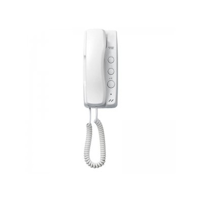 This audio handset is made from white ABS plastic and features an adjustable volume control which can also be set to mute.